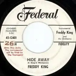 "Hide Away" or "Hideaway" is a blues guitar instrumental that has become "a standard for countless blues and rock musicians performing today".[1] First recorded in 1960 by Freddie King, the song became a hit on the record charts. It has been interpreted and recorded by numerous blues and other musicians and has been recognized by the Rock and Roll Hall of Fame and the Grammy Hall of Fame.