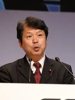 In 2000, after leaving the ministry, he was elected to a seat of the House of Representatives for the first time; the district he represented, Yamaguchi Prefecture's No. 2 district, was previously a stronghold for the rival Liberal Democratic Party.[1] Following a large-scale upturn by the Liberal Democratic Party, Hiraoka lost his seat by 588 votes, remaining in the Lower House through a process known as proportional representation.[1] In 2008 he took back the Yamaguchi No. 2 seat, marking his fifth term as its representative for the Lower House.[1] Hiraoka was later appointed state secretary for internal affairs and communications in 2010.[1] In September 2011 he was appointed Minister of Justice in the cabinet of newly appointed prime minister Yoshihiko Noda.[1]