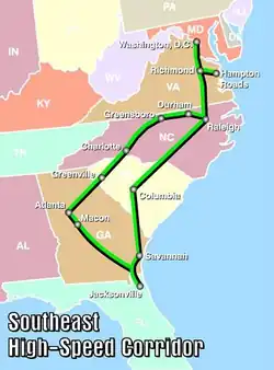 - ^ "Chronology of High-Speed Rail Corridors". Federal Railroad Administration, U.S. Department of Transportation. Archived from the original on February 19, 2012. Retrieved February 27, 2011.