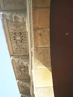 Other significant architectural features include a beautiful frieze featuring Masonic symbols running along the exterior roofline of the building along Figueroa Street and Avenue 56. From the exterior, the most impressive feature is the Figueroa Street facade with its columns and balcony at the eastern edge of the Banquet Hall.