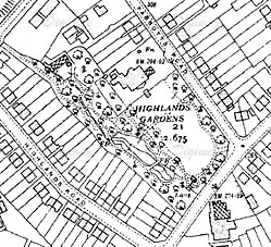 Highlands Gardens and house on a 1930s Ordnance Survey map.