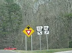 Arkansas Highway 113 was designated as part of the original 1926 state highways a route from Leola to Poyen. By 1928, a second segment was created from Highway 10 to Bigelow and this segment was labeled 'impassable'.[5] Between 1943 and 1945, the highway was extended to Morrilton.[6] In 1957, the segment from Leola to Poyen was renumbered to Highway 229. The segment along US 64 was added in 1963.[7]