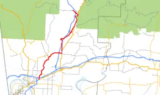| Van Buren | 0.00 | 0.00 | Western terminus of southern section; road continues south as Spradley Road | ||