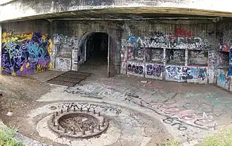 Hill 60 Park is dominated by the rocky headland of Boilers Point and the sheltered embayment of Fisherman's Beach. Hill 60 rises steeply above Fisherman's Beach to a peak of 71 m a.s.l. at which point is situated the Illowra Trig Station. The elevated areas of the park are largely cleared and grassed and contain a public recreational Lookout, car park, access road, walking track, a hang-gliding launch pad and a Coast Guard radar operations unit. There are a number of defence installations, including gun batteries, tunnels, engine houses, search and spotlight positions, communications cabling, defence personal housing and amenities, and local defence earthworks, a transformer site, security post and tunnel installations, on the upper elevations of the Hill and along its side slopes. The peak of Hill 60, in the vicinity of the Illowra Trig Station was subject to considerable landscaping including infilling with coal wash which effectively increased the ground level in that area by several feet. While many of the installations were decommissioned after the war and sold off by the Commonwealth, a number are still in place in the study area to this day.[1]