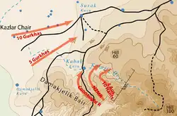 Hill 60 (Kaiajik Aghala) commanded the low ground occupied by a thin line of outposts between the Allied forces at Anzac and Suvla.[3] The hill was to be taken as part of an attack that stretched over a two-mile front from Hill 60 through Hetman Chair, Hill 70 and Oglu Tepe.[4] The initial attacking force was based on troops allocated to Major-General Herbert Cox by Lieutenant-General William Birdwood:[5][6]