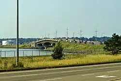 The Hillsborough River Bridge is a bridge crossing the Hillsborough River estuary between Charlottetown and Stratford in Queens County, Prince Edward Island. The current road bridge, built in 1962, replaced a 1905 rail bridge crossing the same span which was known by the same name.