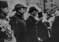 Bussche-Haddenhausen took over as acting head of the German embassy in Bucharest on 18 September 1914, again succeeding Julius von Waldthausen, who retired. In December 1915, Bussche-Haddenhausen was appointed Envoy but had to return to Germany at short notice in the summer of 1916 because of the unexpected break in diplomatic relations with Romania.[8] When he arrived, he was put into temporary retirement in September, but was deployed again at the Foreign Office in Berlin in November 1916, focusing on various departments, including Politics, Trade Policy, Law, Intelligence, and the Central Office for Foreign Service. On 27 January 1918, he was awarded the title of Real Privy Councilor with the title of "Excellence". As a result of the collapse of the Empire and the dissolution of state institutions, his assignment at the Foreign Office in Berlin ended on 1 January 1919.[9]