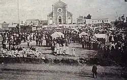 Santa Teresa's Kermesse in Dante Alighieri Square with the Cathedral of Caxias in the background, in 1910.