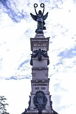 Plaza Libertad is the location of the Monumento de los Héroes (Monument to the Heroes), a commemoration of the centenary of the "First Cry of Independence" in 1811. The monument is crowned by an "angel of freedom" at its pinnacle holding a laurel wreath in both hands. As a consequence of increased commercial activity, the area around the plaza was enhanced with the construction of the ornate Portal la Dalia in 1915–1916 and Portal de Occidente in 1917.
