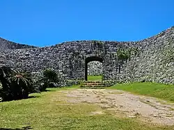 This list is of the Historic Sites of Japan located within the Prefecture of Okinawa.[1] Much of the heritage of the Ryūkyū Kingdom and Islands was destroyed during the Battle of Okinawa. The mausoleum complex of Tamaudun, Shuri Castle, Katsuren Castle, Nakagusuku Castle, Nakijin Castle, Zakimi Castle, Sefa-utaki, and Sonohyan-utaki all form part of the UNESCO World Heritage Site Gusuku Sites and Related Properties of the Kingdom of Ryukyu.[2]