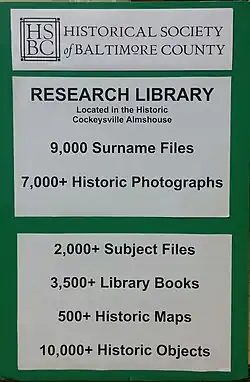 - ^ "Research," Historical Society of Baltimore County, accessed May 23, 2018.