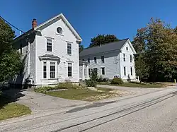 In contrast to today, people who lived near "the Corner" of Elm and Main Streets in the 19th century would not think of shopping at the Lower Falls end of the latter thoroughfare. For over 150 years, much of the retail activity in the Upper Village occurred in the area of the Brick Store at 357 Main Street. Some of the oldest buildings on Main Street are those on its southern side, clustered between the Catholic and Baptist churches.[16] The Daniel Wallis House at 330 Main Street, for example, was built around 1810.[16] Around the middle of the 19th century, Captain Cushing Prince Jr. (1786–1869)[17] moved here from his historic house on Greely Road which he inherited from his father, Cushing Prince (1745–1827).[16]