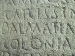 In 180 BC the Illyrian tribe, the Delmatae, from which Dalmatia derives its name declared itself independent of Gentius, the Illyrian king, and established a republic. Its capital was Delminium (current name Tomislavgrad); its territory stretched northwards from the river Neretva to the river Cetina, and later to the Krka, where it met the confines of Liburnia.[6] After the fall of the Illyrian Ardiaei Kingdom in southern, the Dalmatae posed the greatest force against the Romans in their conquest of Illyria. A series of Roman-Dalmatian Wars were fought for control of Dalmatia, The first war in 156 BC – 155 BC finished with the destruction of the Dalmatian capital Delminium by the Roman army. Additional wars were fought 118-117 BC and 78 BC-76 BC, the latter finishing with Rome's capture of the Dalmatian stronghold of Salona (near modern Split, Croatia). Further uprisings against Rome occurred in 34. B.C., ending with Rome's capturer of the Dalmatian capital of Klis, and during the Great Illyrian Revolt against Rome in 6 - 9 A.D, which involved half a million combatants, auxiliaries and civilians.