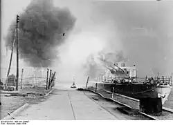 The city also served as a training point for members of the German minority within Poland that, recruited by organisations such as the Jungdeutsche Partei ("Young German Party") and the Deutsche Vereinigung ("German Union"), would form the leading cadres of Selbstschutz, an organisation involved with murder and atrocities during the German invasion of Poland in 1939.[31] Jews were also increasingly persecuted; the Danzig Great Synagogue was taken over and demolished by the local authorities in 1939.