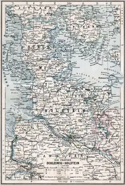 Map of the Prussian Province of Schleswig-Holstein as of 1905.