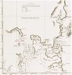A sketch of Capt. Flinder's voyage through Norfolk Bay, Tasmania in 1814
