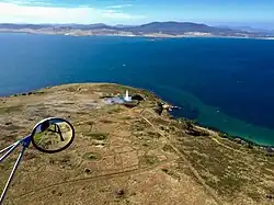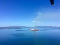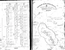 On 19 February 1863, Thomas Reid commissioned the surveyor general, James Erskine Calder, to assess the island.[23] In his survey, Calder determined the island was 146 acres (59 ha), lightly timbered, with about 40 acres (16 ha) suitable for agriculture[24] with little or no clearing. He believed that the remaining portion of the land could be cleared or burned-off for pasture. He rated the island's water to be of good quality but unproven for the demands of cattle.[25] The eastern shore of the island was found to have the best landings, and had been improved in four places, Calder believed, for whaling operations carried out on Norfolk Bay.[26] There had been some mineral exploration for blue granite and iron, though no beds were found. Calder evaluated the island as "well worth £2 per acre".[27]