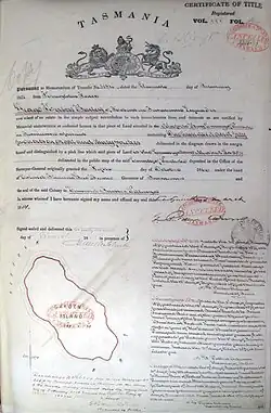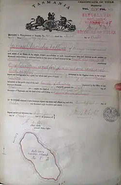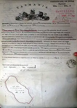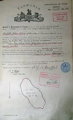 129. ^ a b "File:Smooth Island (Tasmania)- Quested mortgage information.JPG". 16 September 2017. Archived from the original on 18 July 2021. Retrieved 18 March 2018 – via Wikipedia.
