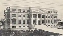 In 1916, a neo-classical county courthouse was opened. Prior to the opening of the courthouse, county business was conducted at a school building located at Clematis Avenue and Poinsettia Street.[7] The building underwent renovations in the 1950s and 1960s.[28] It was used as the county courthouse until a new courthouse opened in 1995. The Board of County Commissioners agreed in 2002 to return the historic courthouse to its original design. Restoration was completed in March 2008 at a cost of just over $18 million. Today, the original courthouse houses the Historical Society of Palm Beach County and the Richard and Pat Johnson Palm Beach County History Museum.[29]