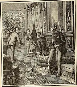 Gentlemen callers at the house of a young woman.