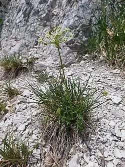 Hladnikia is a monotypic genus of flowering plants belonging to the family Apiaceae.[3] Its sole species, Hladnikia pastinacifolia, is a Slovenian paleoendemite,[4][5] restricted to the area of only 4 km2, located in Trnovo Forest Plateau, karst plateau of Western Slovenia.[6] German botanist Heinrich Gottlieb Ludwig Reichenbach named the genus after Carniolan botanist and founder of Ljubljana Botanical Garden Franz Hladnik.[4][7]