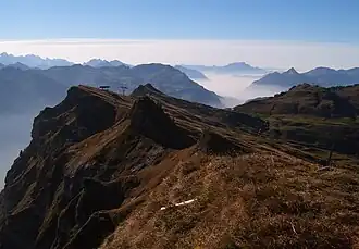 Hoch-Ybrig is dominated by the mountain range Forstberg - Druesberg (2282 metres) - Twäriberg. These mountains form a boundary between Hoch-Ybrig on one side and Muotathal valley and Canton of Glarus on the other side.