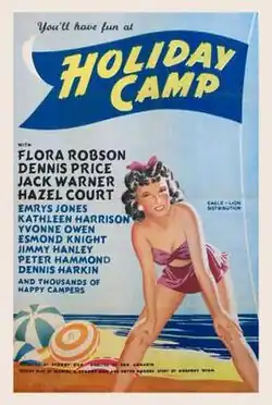 Holiday Camp is a 1947 British comedy drama film directed by Ken Annakin, starring Flora Robson, Jack Warner, Dennis Price, and Hazel Court, and also features Kathleen Harrison and Jimmy Hanley.[3] It is set at one of the then-popular holiday camps. It resonated with post-war audiences and was very successful. It was the first film to feature the Huggett family, who went on to star in "The Huggetts" film series.