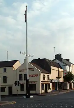 • Holywood is known for its maypole at the crossroads in the centre of town. Its origin is uncertain, but, according to local folklore, it dates from 1700, when a Dutch ship is said to have run aground on the shore nearby, and the crew erected the broken mast to show their appreciation of the assistance offered to them by the townsfolk. It was the only surviving original maypole in Ireland,[15] but was severely damaged in high winds in February 2021 and had to be replaced.[16]