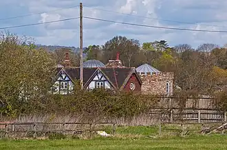 Honeycrock Farm in Salfords, Surrey was the subject of a lengthy legal battle to demolish a Mock Tudor family home that was built without planning permission. The action was taken by Reigate and Banstead Borough Council after the site's owner built a large dwelling (c.2001) concealed behind a haystack. The local authority only became aware of the mock castle after the bales were removed in 2004. Known popularly after its owner as "Fidler's Castle",[1] the building was eventually demolished in 2016 following a decade of legal disputes.