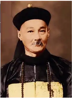 Hong sympathised with the Kuomintang led by Sun Yat-sen, gifting Sun with ivory after the 1911 revolution. After losing his tax farming license, he died on 5 March 1937, aged 84.[20] Taechawanit Road, which he financed, is named after him.[21] His mansion became the present-day Phlapphachai Police Station.[22] Deified as a 'luck-bringer', he remains worshipped by Thai gamblers.[23][24]