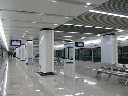 Hongkou Football Stadium (simplified Chinese: 虹口足球场; traditional Chinese: 虹口足球場; pinyin: Hóngkǒu Zúqiúchǎng) is an interchange station between Lines 3 and 8 on the Shanghai Metro.[1] The station opened on 26 December 2000 as part of the initial section of Line 3 from Shanghai South Railway Station to Jiangwan Town;[2][3] the interchange with Line 8 opened on 29 December 2007 as part of that line's initial section from Shiguang Road to Yaohua Road.[4]