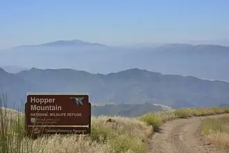 Hopper Mountain National Wildlife Refuge is located in the Topatopa Mountains of Ventura County, in southern California. It is bordered by the Los Padres National Forest and the Sespe Condor Sanctuary to the north. The 2,471-acre (10.00 km2) refuge was established in 1974 to protect the endangered California condor, its habitat, and other wildlife resources.
