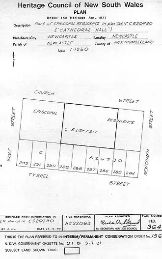 1. ^ a b c d e f g h i j k l m n o p q r "Anglican Cathedral Hall, Christ Church". New South Wales State Heritage Register. Department of Planning & Environment. H00156. Retrieved 1 June 2018. Text is licensed by State of New South Wales (Department of Planning and Environment) under CC BY 4.0 licence.