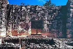 Hormiguero was a Mayan city which was at its peak in the Late Classic Period (650–850). It is located 22 kilometers south of Xpuhil in the Mexican state of Campeche. Only a few of its 84 known structures have been excavated. Structure II is the most completely excavated building at the site and one of the most wildly theatrical of all Rio Bec buildings. It is a rectangular platform, with two soaring, false-staircase towers either side of a colossal Chenes-style monster-portal. Inside there are several large chambers. Nearby is the Central Group, a complex of large temples, most of which are not excavated. Of those that are, Structure V is the most impressive. It is a towering pyramid with a well-preserved Chenes-style temple at the top.