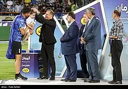 Hosseini receiving 2021–22 Iran Pro League championship medal