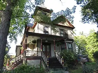 It was built in about 1890 by Combs & Pearsall, and is a two-story, clapboard sided, Queen Anne style residence with a cross-gabled roof. It features a three-story square tower with a pyramidal roof with overhanging eaves supported by decorative scroll sawn brackets.[2]