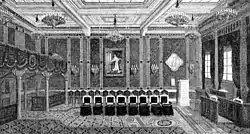 Modeled after the British House of Lords, the House of Councillors was intended to serve as an intermediary between the Crown and the Chamber of Deputies, and formally served as the lower house's equal.[1][2] Its members comprised the aristocracy and noblemen, including the royal princes, holders of the crown offices, archbishops, members of the mediatized houses in Bavaria and hereditary and lifelong nominees of the crown.[3]