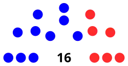 The Council has sixteen members: eleven from council districts and five elected at-large. The members of the Council are elected every four years, with the most recent election being held in 2023 and the next being held in 2027. All positions are up for re-election at the same time. Council Members are limited to two terms of four years.[3] Under the current city charter, if the population in the city limits went past 2.1 million residents, the previous nine-member city council districts would be expanded with the addition of two city council districts.[4] Since the threshold was passed, the city created two new districts.[5]
