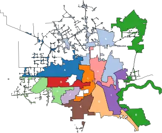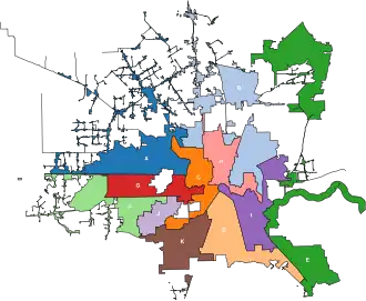 As of 2011 the City of Houston has eleven city council districts, A through K.[12]