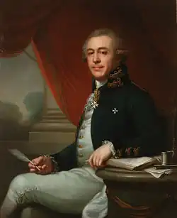 In 1780, Arghutian and the influential Russian-Armenian Ivan Lazarev met with Potemkin to discuss Russia's policies towards the Caucasus and Armenia.[1] The signing of the Treaty of Georgievsk in 1783, by which the Kingdom of Kartli-Kakheti became a protectorate of Russia, encouraged Arghutian to increase his diplomatic efforts.[11] The same year, Arghutian presented a proposal for a Russian-Armenian alliance to the Russian court which envisioned the creation of an Armenian state under Russian suzerainty.[1] According to the proposal, the future Armenian kingdom would be protected by Russian troops paid for by the Armenians. Armenia would have a trade port on the Caspian Sea, and would be represented by an envoy in Saint Petersburg. The proposal contained descriptions of an Armenian flag and coat of arms.[11] Arghutian and Lazarev also presented a more radical alliance proposal drafted by the Indo-Armenian merchant Shahamir Shahamirian, although neither proposal appears to have resulted in anything.[12]