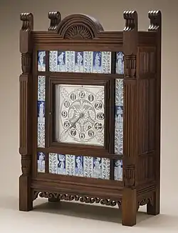 An example of a Lewis Foreman Day clock, designed in about 1880, and made by Howell James & Co., with ebonised birch wood case and a porcelain face, is held by the Victoria and Albert Museum.[4] The LACMA has a similar example, shown above.
