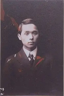 Huang was born on 3 July 1895 in Mengjia (a.k.a. Manka), Taipei City, now known as Wanhua, and his father was a rickshaw repairman.[2] Huang's eldest brother had already died by the time he was born.[3] Huang's elder surviving brother took up their father's trade, and inspired young Huang to sculpt.[4] Huang's father died when Huang was twelve, and the family moved to Dadaocheng.[3] He was a student at Da Daocheng Elementary School, now called Taiping Elementary School.[5] Huang was trained in Tokyo, and later worked there, when Taiwan was part of the Japanese Empire.[6] During Huang's time in Japan, he was mentored by sculptor Fumio Asakura.[7] Six months after graduating from school, he was sponsored by a Taiwan Governor-General official to study carving at the Tokyo School of Fine Arts.[2] He was the first Taiwanese student to attend the Tokyo School of Fine Arts, and also the first Taiwanese artist to be participate in the Imperial Art Exhibition of Japan (帝展, Teiten).[8][9] He submitted the sculpture (Bust of a) Girl into the exhibition, and later donated the work to Taiping Elementary School in Taipei.[10][11]