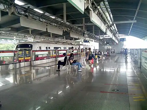 Huangge Station (simplified Chinese: 黄阁站; traditional Chinese: 黃閣站; Cantonese Yale: Wòhnggok Jaahm) is an elevated station of Line 4 of the Guangzhou Metro.[1] It started operations on 30 December 2006. It is located at the junction of Huangge Avenue[2] and Shinan Road[3] in the town of Huangge, Nansha District.[4][5]