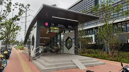 Huangtiandang Station (Chinese: 黄天荡) is a station on Line 5 and Line 7 of the Suzhou Metro.[1] The station is located in Suzhou Industrial Park, Jiangsu. It has been in use since June 29, 2021, when Line 5 first opened to the public.[2] Upon completion of Line 7, the station became an interchange between the two lines.