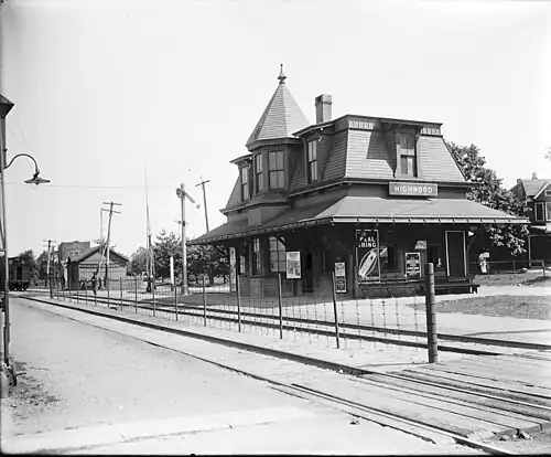 The former station depot at Hudson Avenue c. 1907–1912, when it was known as Highwood.