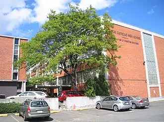 Hudson Catholic Regional High School is a regional four-year co-educational University-preparatory Catholic high school in Jersey City, in Hudson County, in the U.S. state of New Jersey. The school was established in 1964 by the Roman Catholic Archdiocese of Newark,[6] and currently serves young men and young women in ninth through twelfth grades. The high school was conducted by the De La Salle Christian Brothers of the Baltimore District, later the District of Eastern North America, from its inception until 2008; the remaining Brothers were withdrawn in the summer of 2012, leaving the school entirely in the hands of the Archdiocesan education office.[7] The school has been accredited by the Middle States Association of Colleges and Schools Commission on Elementary and Secondary Schools since 1972.[3]