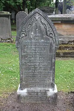 He was married to Elizabeth Jane Robertson (1828-1895). Six daughters are recorded on his gravestone [5] and his son Alexander was the Principal of New College, Edinburgh 1918-1935, as well as one of the architects of the union of the United Free Church of Scotland and Church of Scotland in 1929.