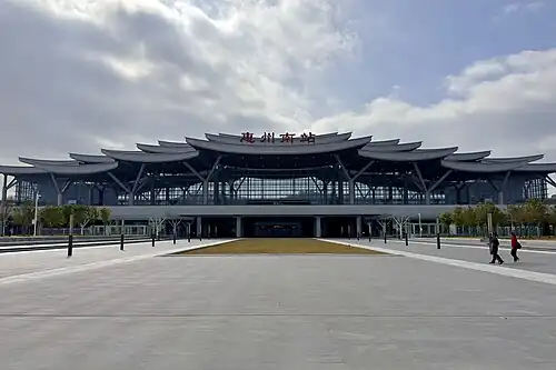 Huizhounan railway station (Chinese: 惠州南站; pinyin: Huìzhōu Nán zhàn) is a high-speed railway station located in Sandong Town, Huicheng, Huizhou City, Guangdong Province, China. It was officially opened on September 26, 2023.[1]