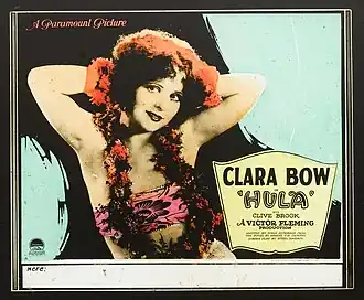 Hula is a 1927 American silent romantic comedy film directed by Victor Fleming, and based on the novel Hula, a Romance of Hawaii (1927) by Armine von Tempski. The film stars Clara Bow and was released by Paramount Pictures.[1] The film entered into the public domain on January 1, 2023, because regardless of the film itself's renewal status, the copyright of the book it was based on was renewed in 1954.[2]