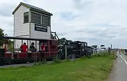 Also in 1960 the Lincolnshire Coast Light Railway Co. Ltd opened a 2-ft narrow-gauge railway, comprising 600 metres of track leased from Grimsby Rural District Council.[49] "Britain's shortest public passenger-carrying railway"[50] was operated by volunteers and ran between North Sea Lane and South Sea Lane stations[51] offering a daily service during the summer months.[52] The tracks were bought from the potato-fields railway at Nocton, Lincolnshire.[53]